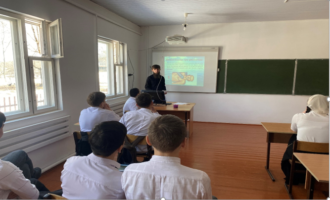 Учитель ОБЖ Аюбов Мухаммад провел открытый урок на тему: «Оказание первой медицинской помощи утопающим».