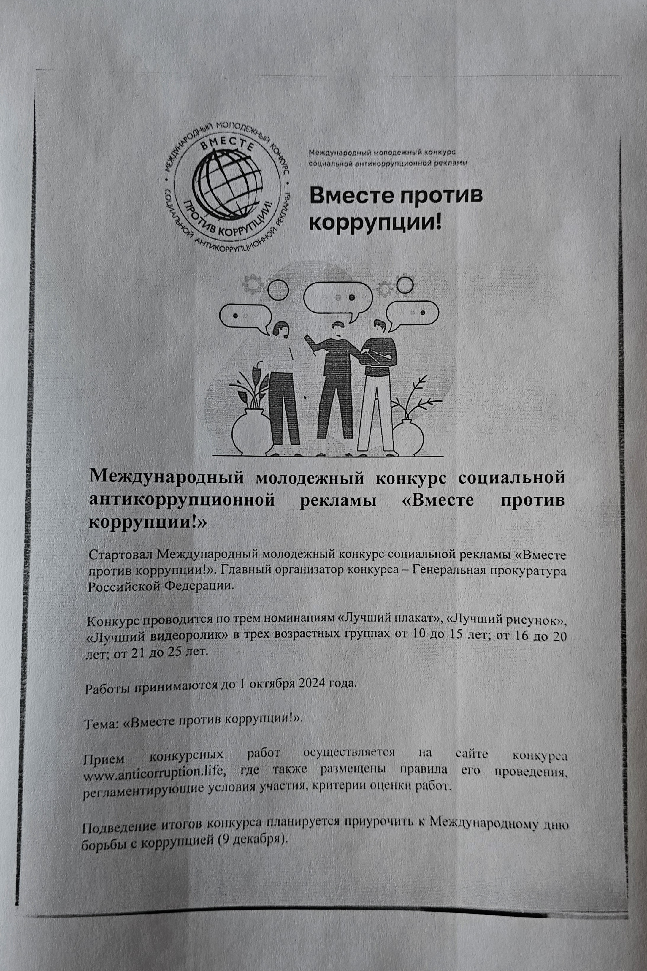 Международный молодежный конкурс социальной антикоррупционной рекламы «Вместе против коррупцни»
